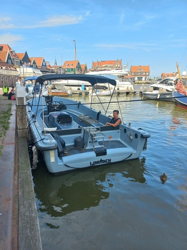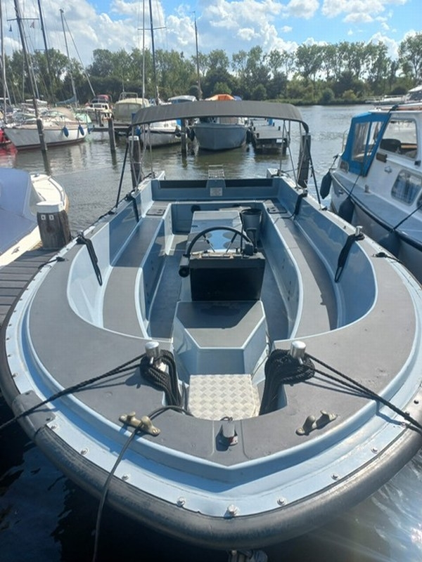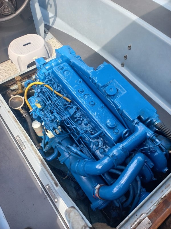 Stuurstand, zitplaatsen op de langsbanken met nieuwe kussenset, open spiegel met zwemptrap.