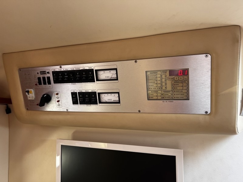 Autopilot, kaartplotter, GPS, Radar, roerstandindicator, navigatieverlichting, marifoon, trimindicator.