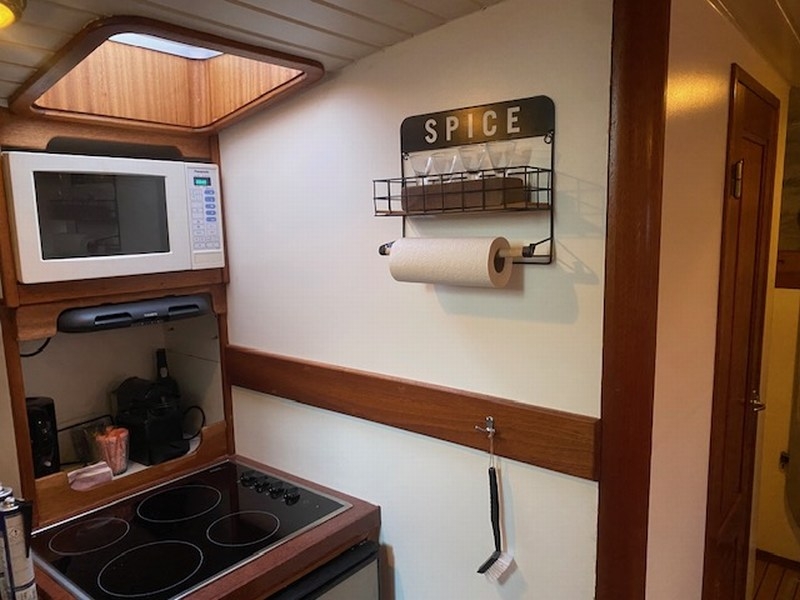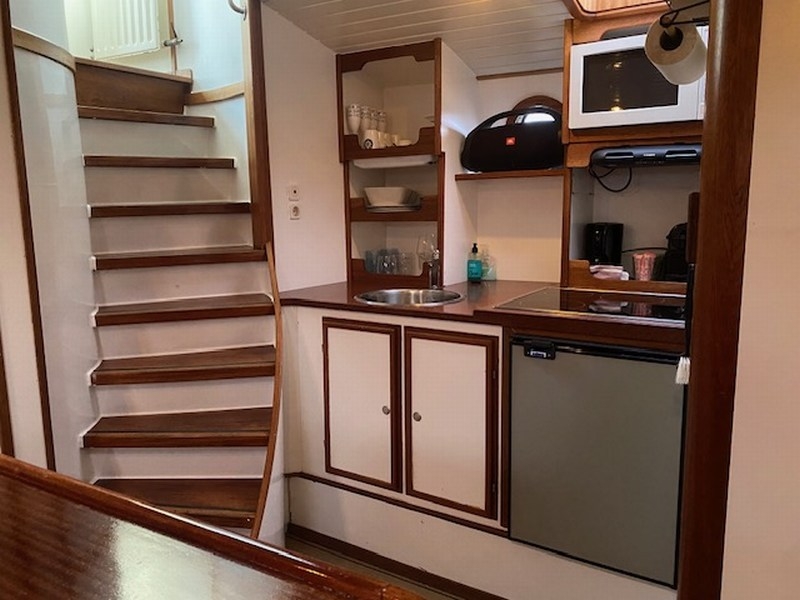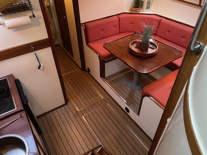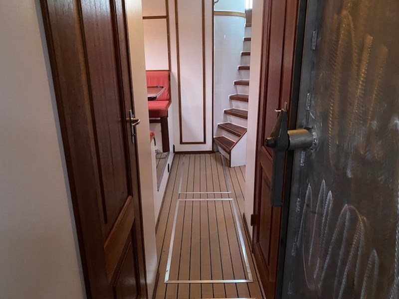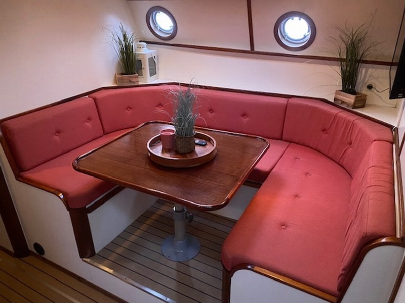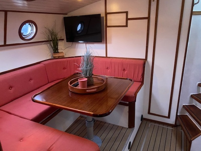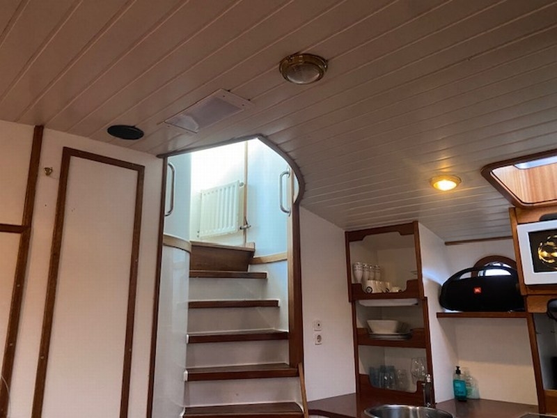 Groot achterdek, portugese brug, voordek met middenrailing, stuurhut met rondom zicht, salon met kombuis, eventueel om te bouwen naar twee persoons bed, gastenhut met stapelbed, toilet ruimte met wasbak en toilet, douche. Voorin eigenaars hut met groot twee persoonsbed met nieuwe matrassen. Koelkast met vriesvak, elektrische kookplaat, magnetron, afzuigkap, leesverlichting. Dieseltank 4500 liter, gereinigd in 2021, Watertank 1500 liter, hetelucht verwarming.